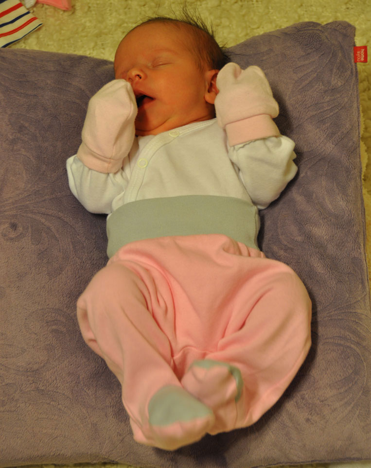 Rozwijała się jak inne dzieci, ale w 2-im miesiącu na jej ciałku pojawiły się czerwone plamki, które były bardzo swędzące i maleństwo cały czas straszliwie się drapało. Dlatego też zakładaliśmy jej ochraniacze na rączki. Budziła się w nocy i usiłowała wykonywać dziwne ruchy, żeby tylko się podrapać.
